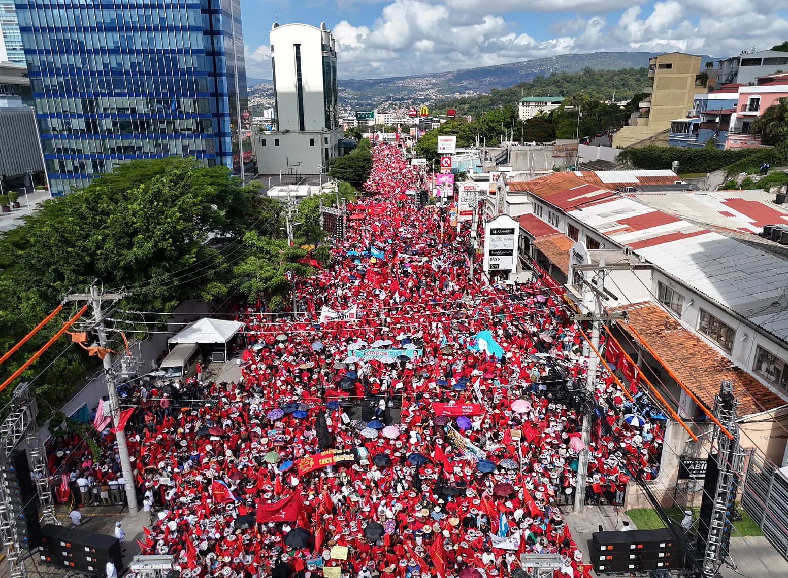 During the commemoration, President Xiomara Castro affirmed that her government belongs to the people. And the people accompanied her. On Saturday, thousands of citizens took to the main avenues of the capital Tegucigalpa, saying never again to a coup. They looked like a red tide while advancing and carrying Honduran flags and banners reading “Never again,” “Honduras, free and sovereign,” and “We are with you, Xiomara.”