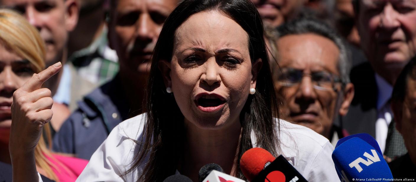 Venezuelan far-right politician María Corina Machado at a press conference on January 29, 2024. Photo: Ariana Cubillos/AP/Picture alliance.