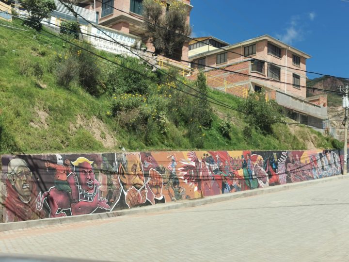 This event is part of a global campaign to demand justice for the victims of the human rights violations committed by the coup regime in Bolivia. It began this morning in Shoreditch, London with a poster replica of a mural done in Bolivia’s capital La Paz in memory of the coup’s victims and to honour the resistance against the violent coup. It is organised by two UK-based Bolivian collectives Wiphalas por El Mundo and Suma Qamaña UK and we helped fundraise for the murals painted in Bolivia by artist Leonel Jurado aka Wilka, who was himself persecuted by the coup regime. We feel very strongly about showing images on the impact of European interference in Bolivia.