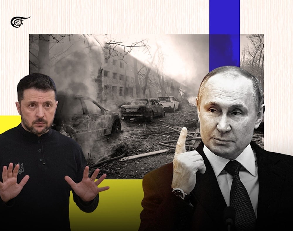 Compilation image of Volodymyr Zelenskyy (Left) and Vladimir Putin (Right). Photo: Batoul Chamas/Al Mayadeen English.