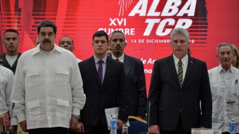 “The Secretary General of the Bolivarian Alliance for the Peoples of Our America (ALBA), (David Choquehuanca) along with the ambassadors of the countries that are part of this important Alliance and diplomatic heads of Russia, Palestine, China, El Salvador, Iran and Turkey on Monday expressed their unrestricted support for the government of President Nicolás Maduro, to peace in the region and respect for international law”, the Venezuelan embassy in Bolivia said in a statement yesterday.