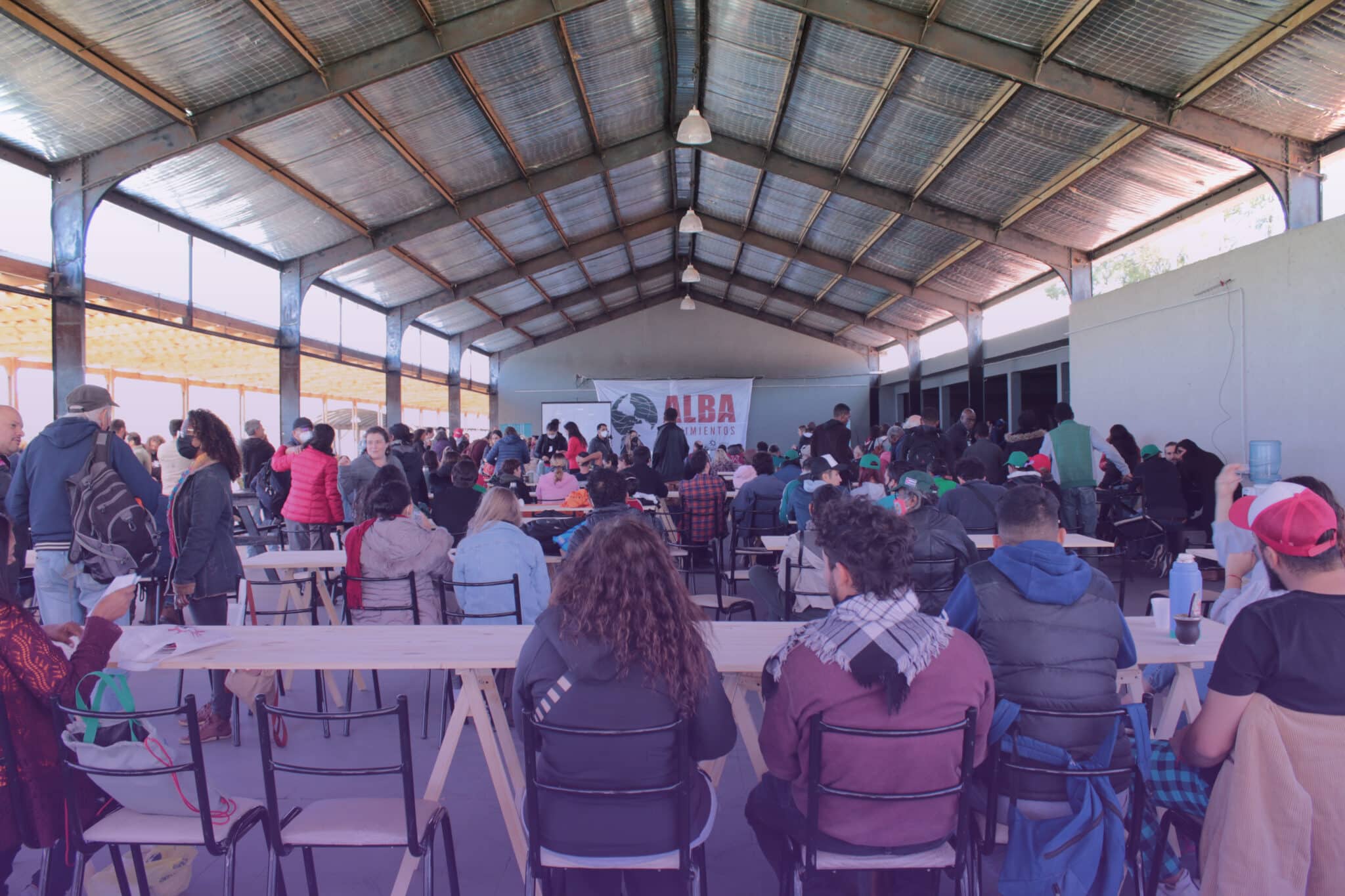 Attendees listening to a presentation during the third Continental Assembly of ALBA Movements, April 2022. Photo: CapireMov.