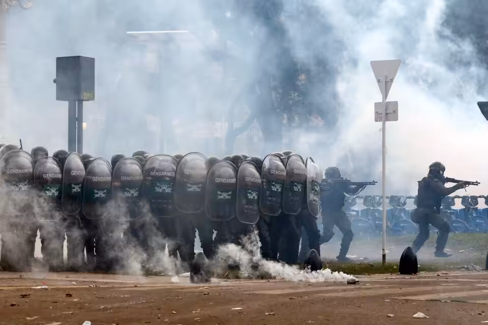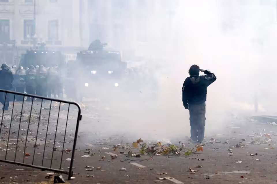Throughout the morning, while the discussions continue in the Senate, there were moments of tension between the police and the protesters when the Police have used their shields to force back the demonstrators.