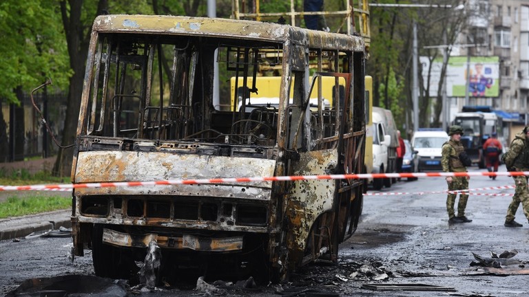 Heavy Ukrainian shelling of central Donetsk on April 28 killed nine civilians – including an eight-year-old girl and her grandmother – and injured at least 16 more. The victims were burned alive when the minibus they were in was hit by a shell.