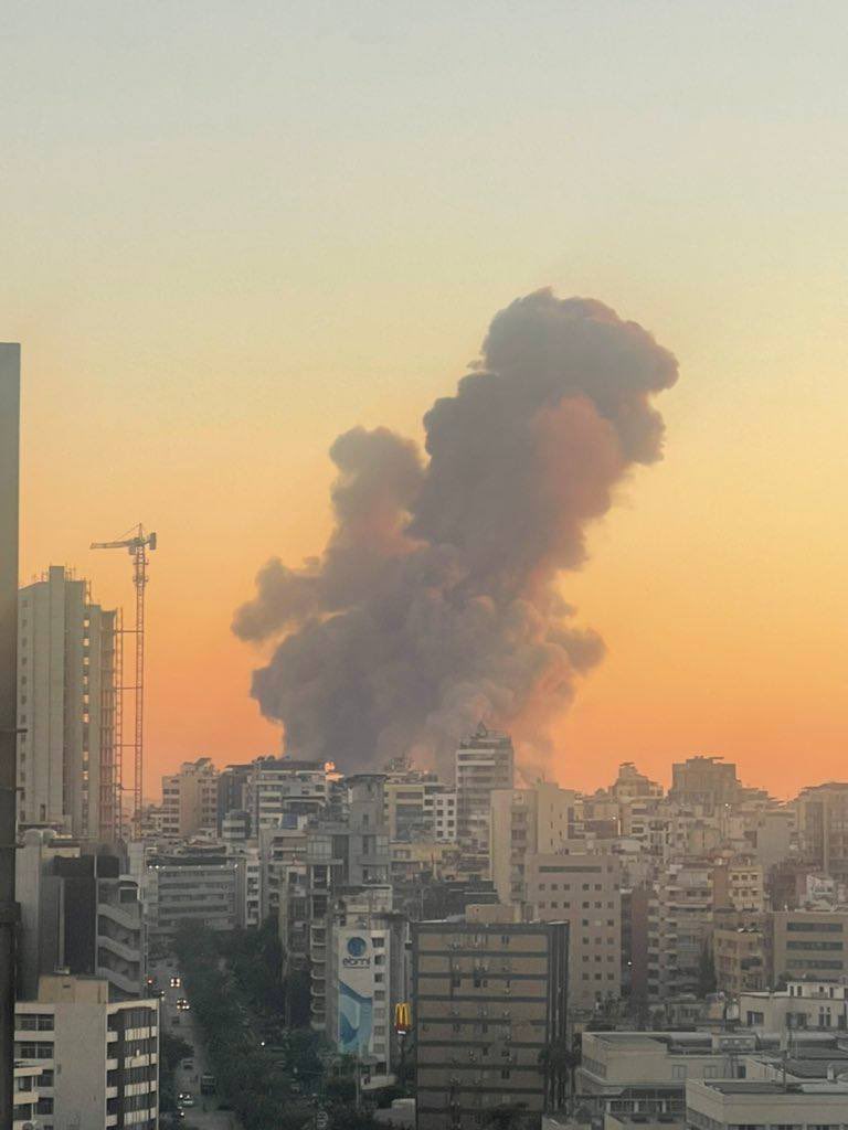 The zionist entity's bombing of Dahieh, Beirut. Photo: X/@Osint613.