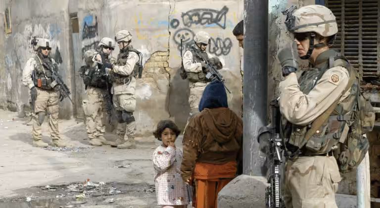 US soldiers from the Army's 82nd Airborne Division patrol Baghdad's Haifa Street district on January 30, 2005. Photo: Charles Onians/AFP.