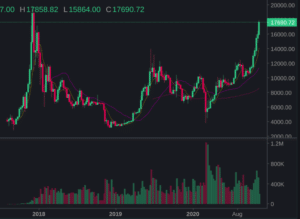 With this new increase, the price of BTC takes a new step closer to its all-time high, almost $ 20,000 dating from December 2017. Since January 6, 2018, during the fall after that peak, it had never been again above $ 17,000 the price of bitcoin, shows the historical graph below.