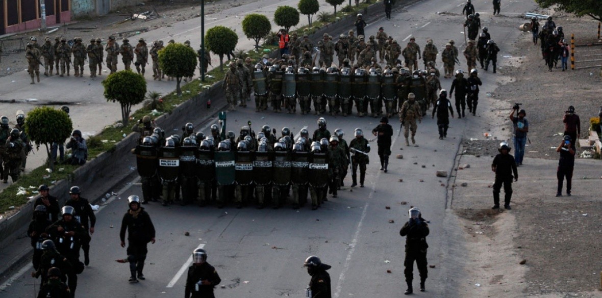 Featured image: Military police block the march of coca leaf producers, supporters of Evo Morales, on the outskirts of Cochabamba, Bolivia, yesterday