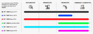 Impact of the sanctions imposed by Trump 1.0 on PDVSA’s value chain: graph made with public data. Photo: Misión Verdad.