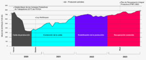 Recovery of oil production in Venezuela: graph made with public data. Photo: Misión Verdad.