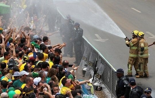 The central area of Brasilia is witnessing a huge deployment of troops including reinforcement of armor and helicopters, with fighter-bombers ready to take off if any threat is determined.