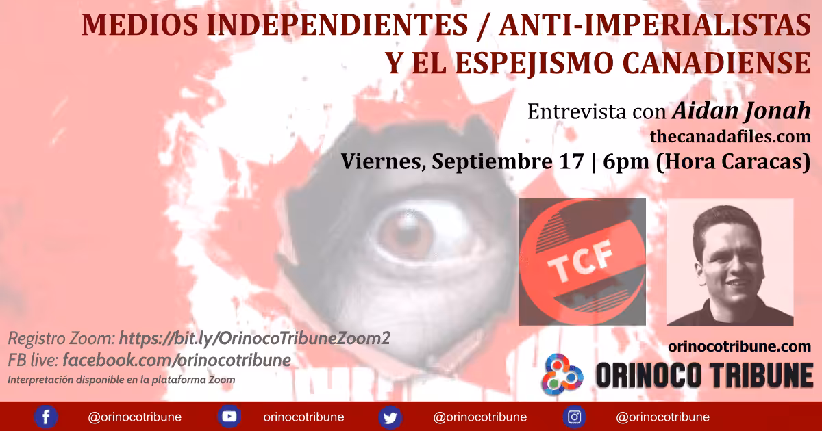 September 12, 2021 (OrinocoTribune.com)—On Friday, September 17 at 6:00 pm (EST), Orinoco Tribune will host a live episode of Chavista Chronicles from Caracas with Aidan Jonah, editor-in-chief of The Canada Files (TCF).