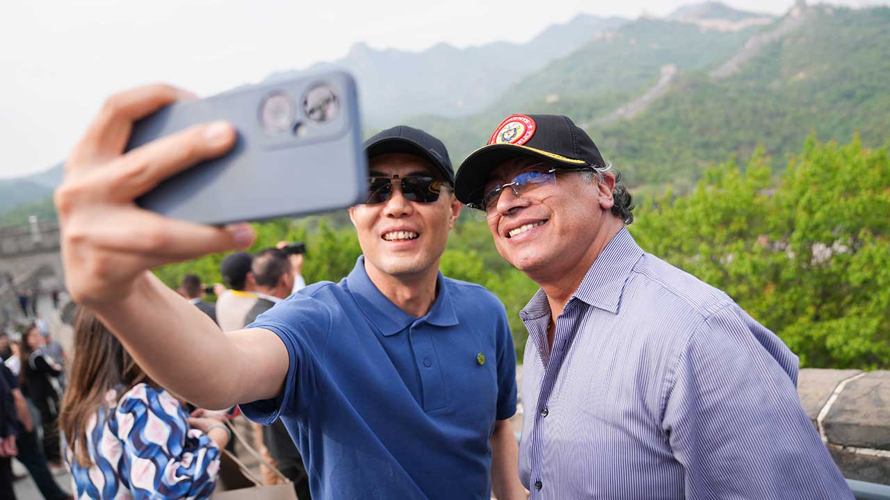 Colombian President Gustavo Petro (right) being photographed by a person during his visit to the Great Wall of China near Beijing on Monday, May 12, 2025. Photo: Colombia's Presidential Office.