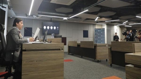 An official at the Special Jurisdiction for Peace makes an announcement. Photo: Telesur/JEP Colombia.