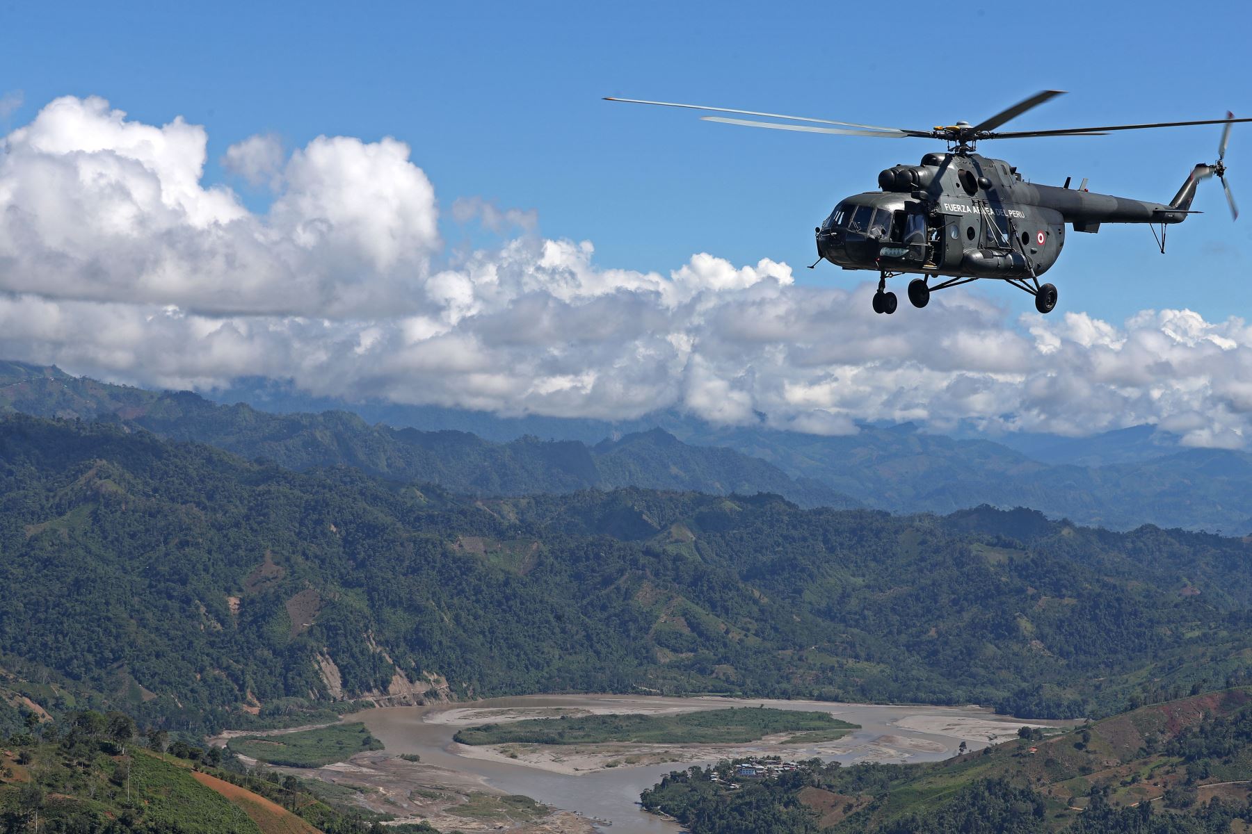 Helicopter flying over the VRAEM (Valley of the Apurímac, Ene and Mantaro rivers), home to 40 US military bases, allegedly fighting “drug trafficking.” File photo.