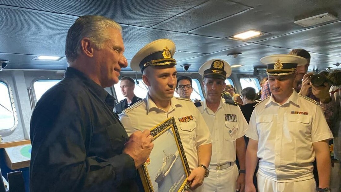 The president of Cuba, Miguel Díaz-Canel, visited the interior of the Admiral Gorshkov frigate and the deck of the Kazan nuclear submarine of the Russian Northern Fleet docked in the port of Havana. The president expressed his gratitude to the Russian sailors for the opportunity to visit the ships.