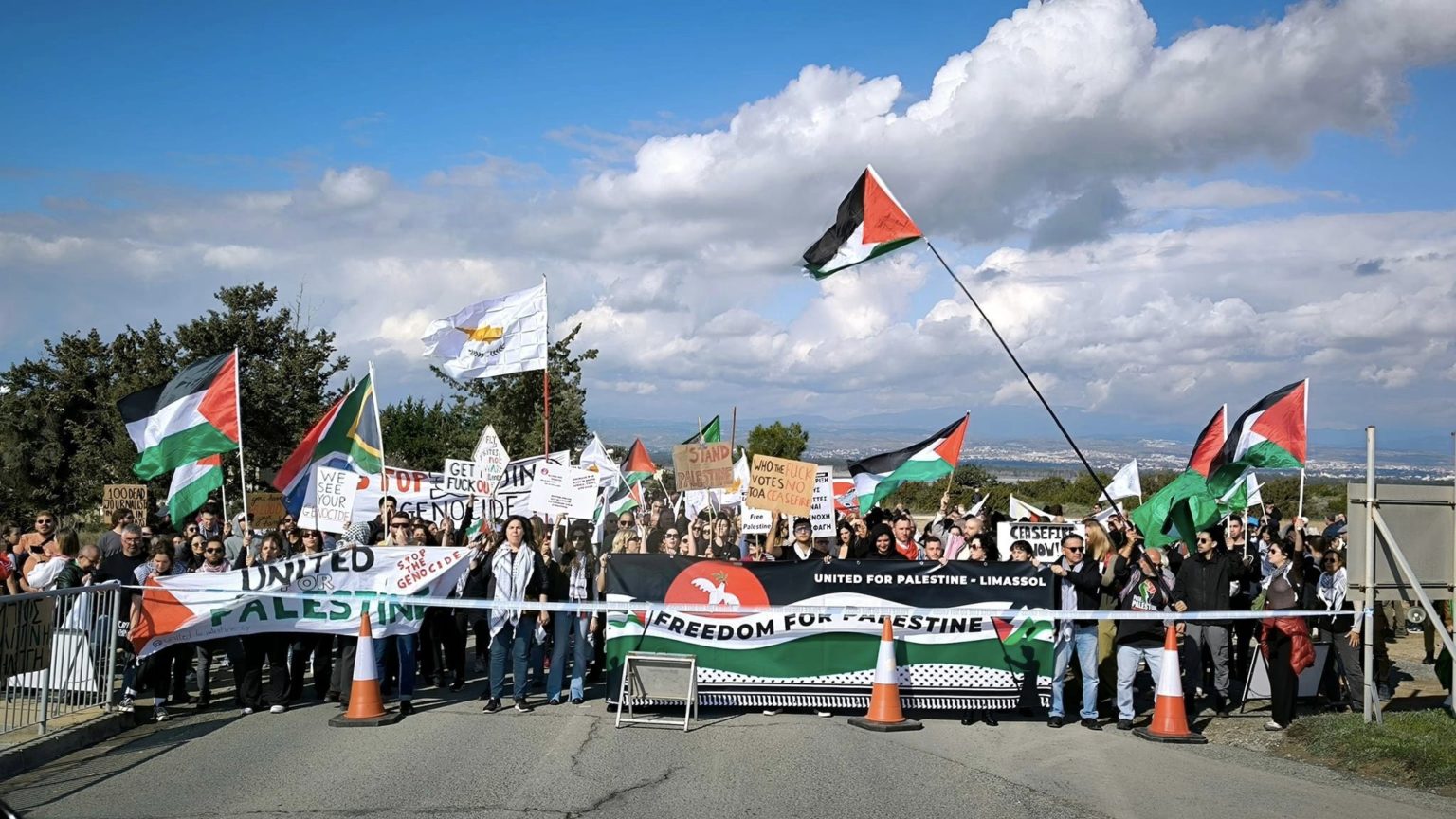 In the protest called by the Pancyprian Peace Council, activists from various anti-war groups and political parties including the Progressive Party of Working People (AKEL), United Democratic Youth Organization (EDON), and Communist Initiative of Cyprus, among others have participated and called for the ouster of foreign military bases, from the Cypriot soil. Protesters expressed solidarity with people of Palestine who are under relentless US-backed Israeli bombardment and called for an immediate ceasefire.