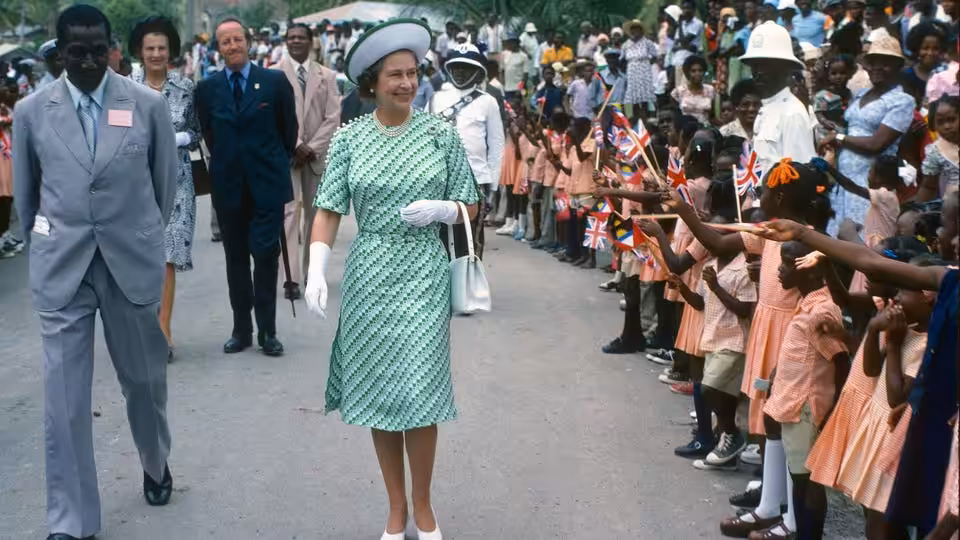 Queen Elizabeth II in Barbados on November 1, 1977. Photo: Anwar Hussein/Getty Images.