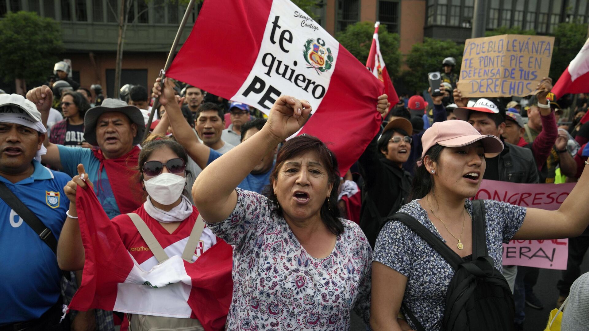 Protesters show their disapproval of the recent coup against Pedro Castillo. Photo: Sputnik.