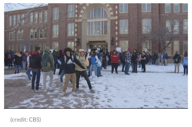 Outside South High School after the start of school on Monday morning some students left the school to join teachers outside. Cordova said that many students did walk out of class on Monday but that none of the schools were out of control or that students were left unsupervised.