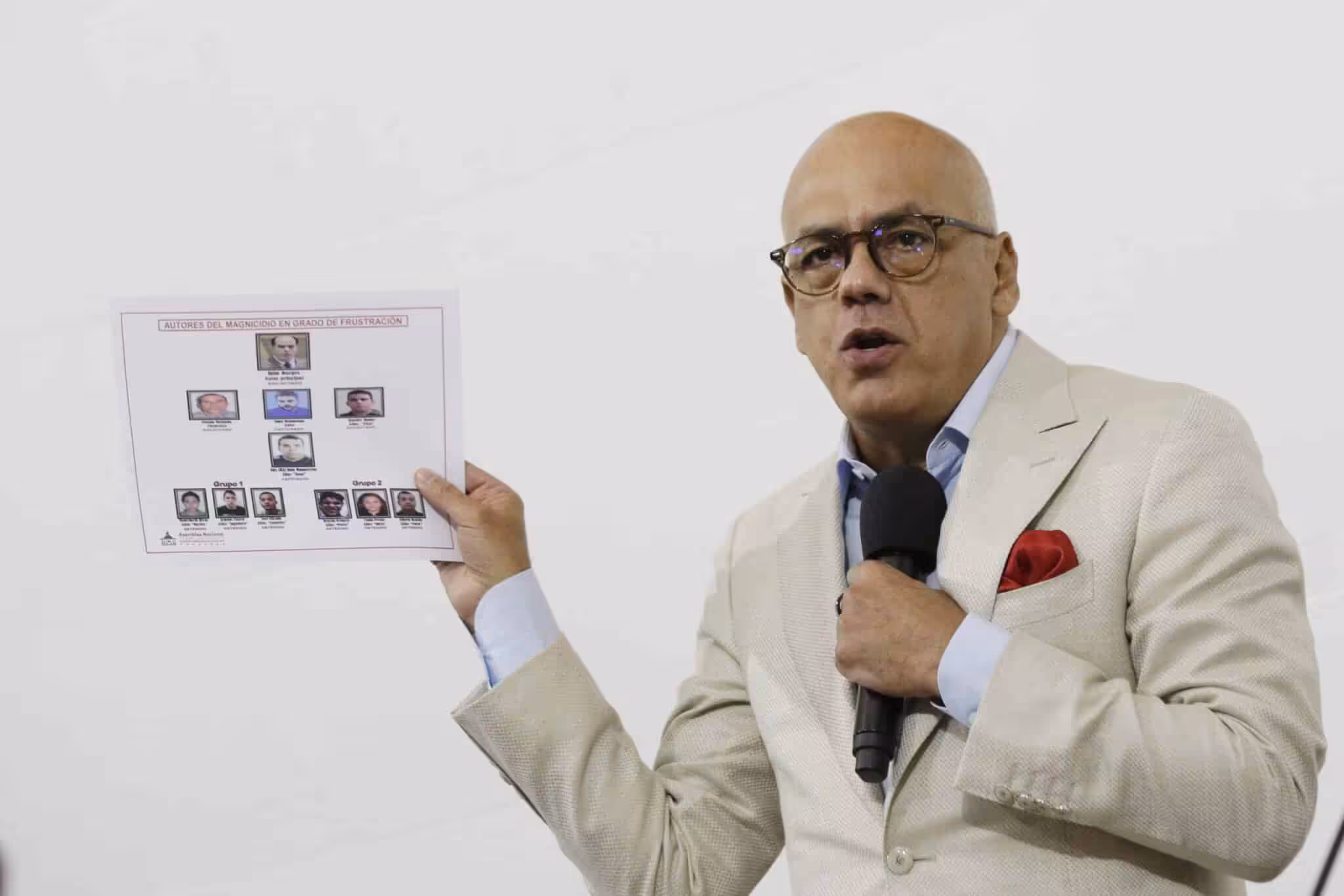 President of the Venezuelan National Assembly Jorge Rodriguez showing a slide with the photos of some of the terrorists sentenced on August 4 for the assassination attempt of August 2018 against President Nicolas Maduro. Photo: Willmer Herrades/Ultimas Noticias.