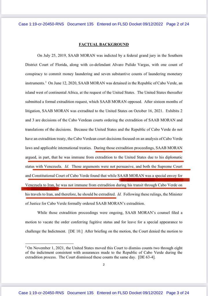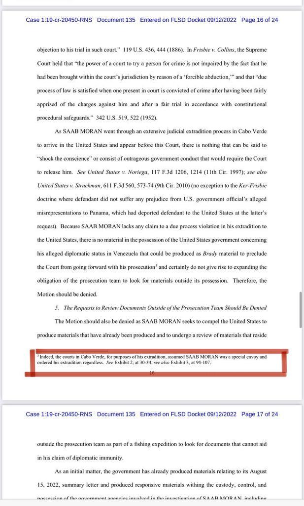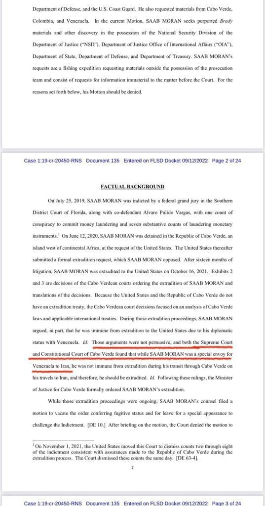 Saab’s defense team is adamant that, given the importance of the case, other branches of the US government, such as a the Department of State, DoJ’s Office of International Affairs, Department of Defense and the Washington Interpol liaison office all hold information that supports the notion that Alex Saab is a Venezuelan special envoy entitled to diplomatic immunity and inviolability.