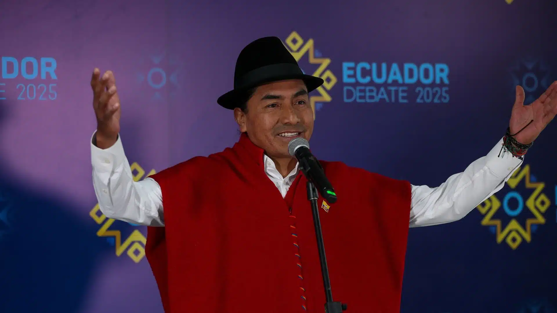 Ecuadorian indigenous leader Leónidas Iza during the 2025 presidential election debate. Photo: NT24/File photo.