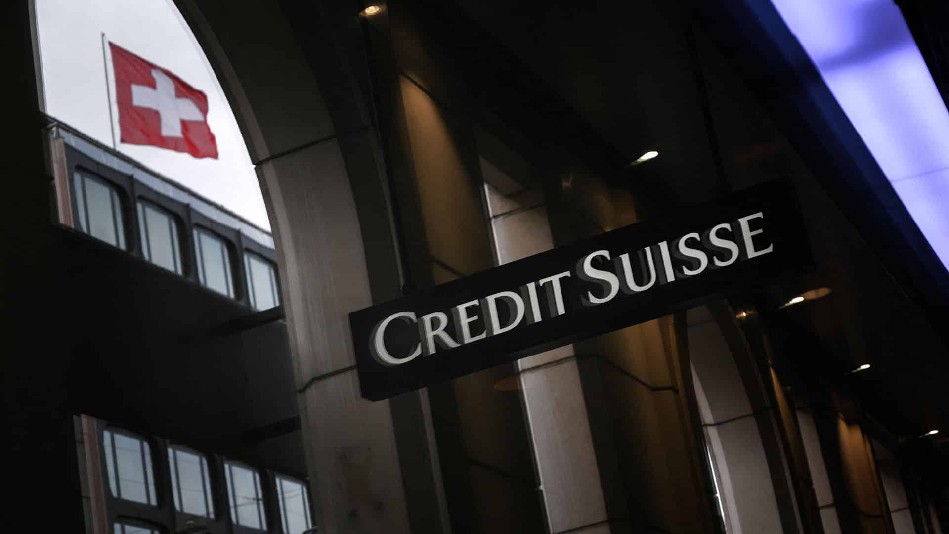 A Credit Suisse building with a reflection of a Swiss flag from a neighboring building. Photo: Fabrice Coffrini/AFP/Getty images.