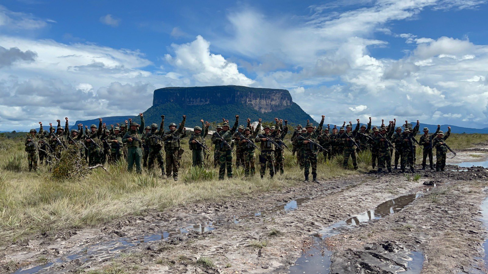 Members of the Bolivarian National Armed Forces salute in front of a protected national park in Venezuela. File photo.