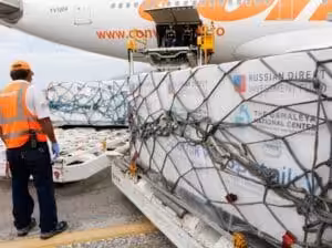 The first batch of 100,000 doses, out of the 10 million agreed between the two nations, was transported in an aircraft of the state owned airline CONVIASA, which landed on Venezuelan soil at the Maiquetía International Airport near Caracas, in compliance with the binational agreement signed between Venezuela and Russia.