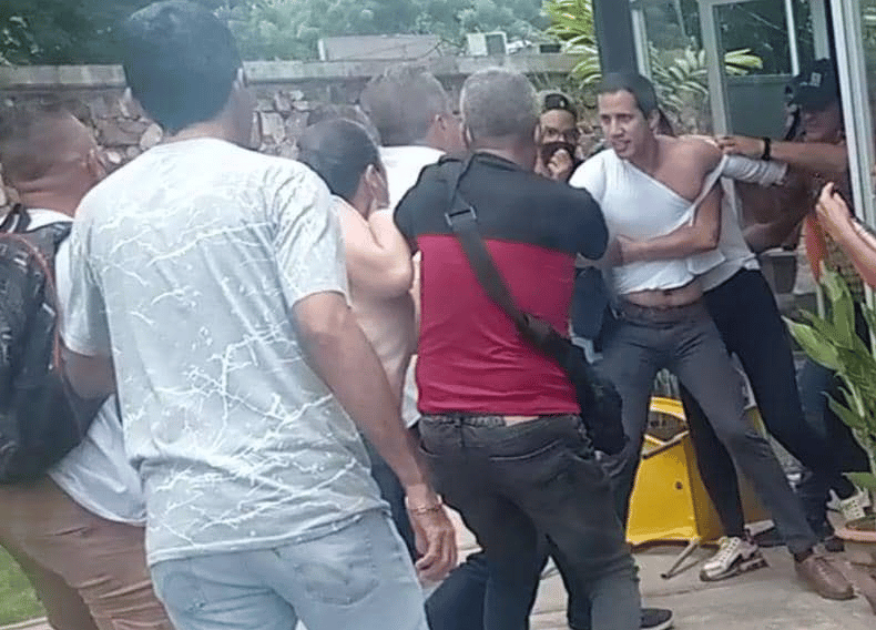 Venezuelan former deputy Juan Guaidó in a fight with his own supporters in front of a restaurant in San Carlos, Cojedes state. Photo: Twitter/@PedroConductaz.
