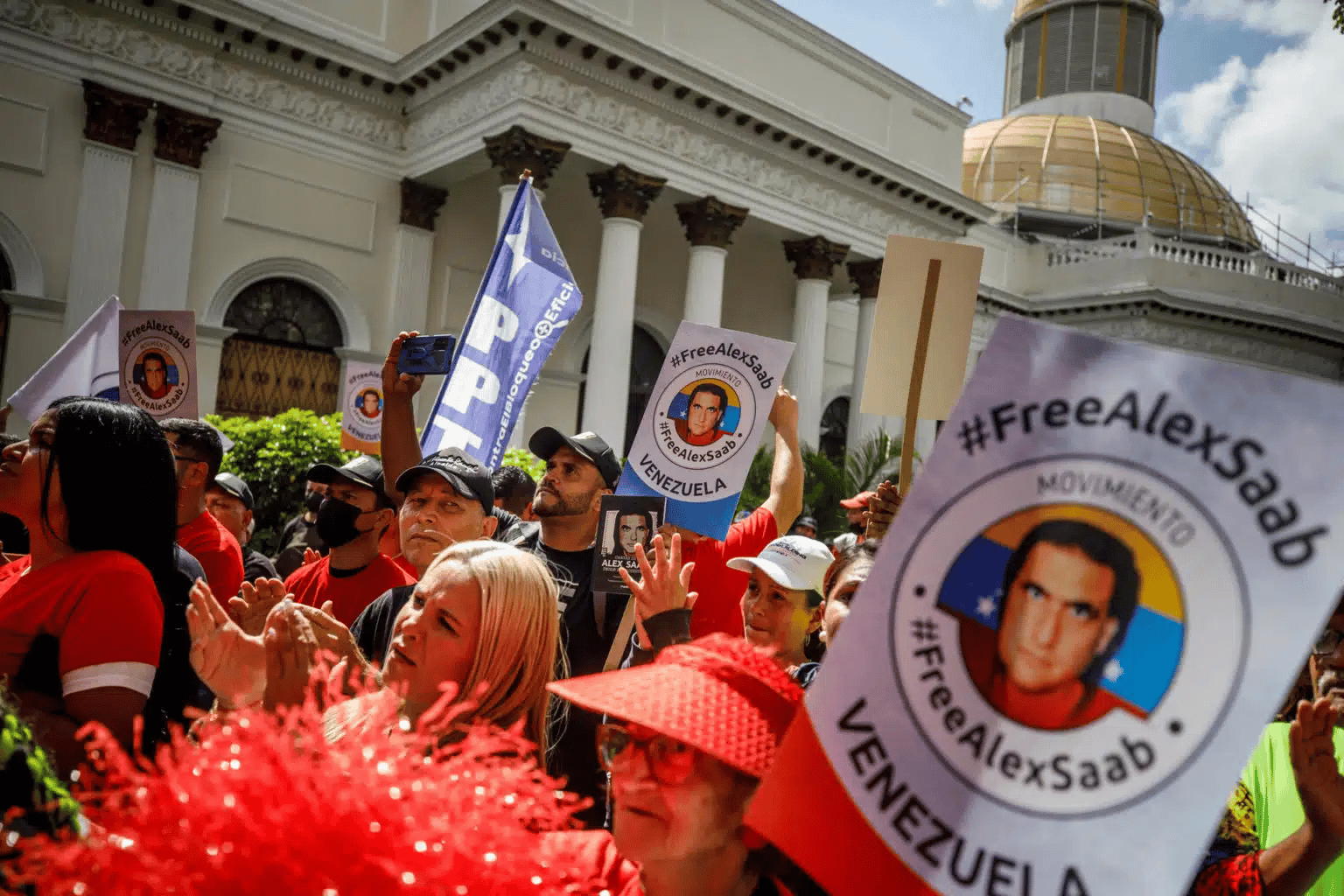 The demonstration was attended by the president of the National Assembly, Jorge Rodríguez; Alex Saab’s wife, Camilla Fabri; representatives of the Free Alex Saab Movement, as well as employees of the Venezuelan Foreign Affairs Ministry.