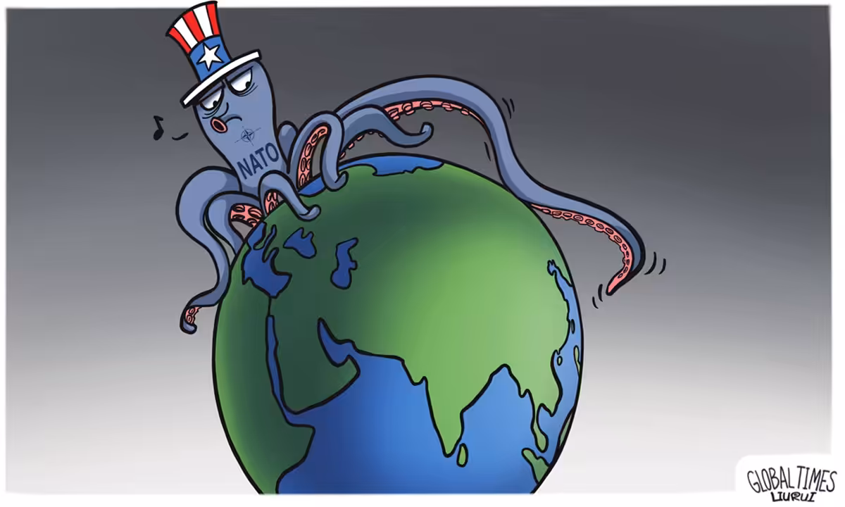A cartoon depicting the US Empire's tool NATO as an octopus over the world. Photo: Liu Rui/GT.