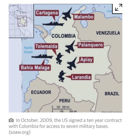 Reinforcing such worries, the US Military High Command is due to visit Colombia this week, where they plan to discuss the Venezuelan border. The United States possesses seven military bases in Colombia, including three a short distance from its eastern border with Venezuela.