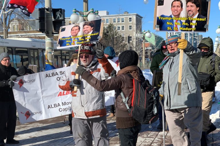 For the first time since Juan Guaidó’s auto-proclamation as so-called interim president of Venezuela in January 2019, a meeting of the Lima group (with its numerous political statements) has failed to even mention his name. All previous meetings of this spurious organization served as pledges to bring Guaidó to power and seemed to constitute virtual swearing-in ceremonies. However, he has never been sworn in, nor even come close, except by himself. On February 20, 2020, despite the extremely cold weather (even by Canadian standards), people demonstrated across Canada, including in front of the Lima group venue in Gatineau, Québec. At the same time, a statement in English, French and Spanish was widely distributed to the public and the media from coast to coast. The message and demonstration slogans focused on the Trudeau government’s role as a U.S. proxy in the Trump-led aggression against the legitimately elected president of Venezuela, Nicolás Maduro.