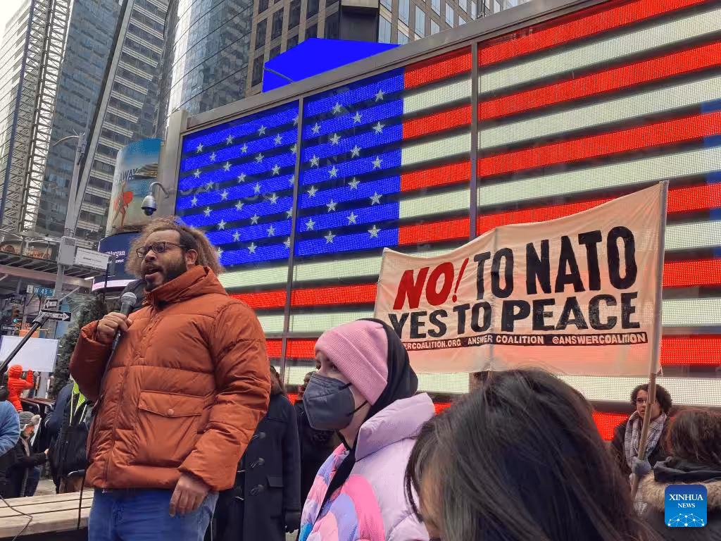 The participants spoke against NATO’s expansion and called for peace in Ukraine, criticizing U.S. hefty spending on the Ukraine crisis and the White House’s announcement to provide Kiev with another Patriot surface-to-air missile battery.