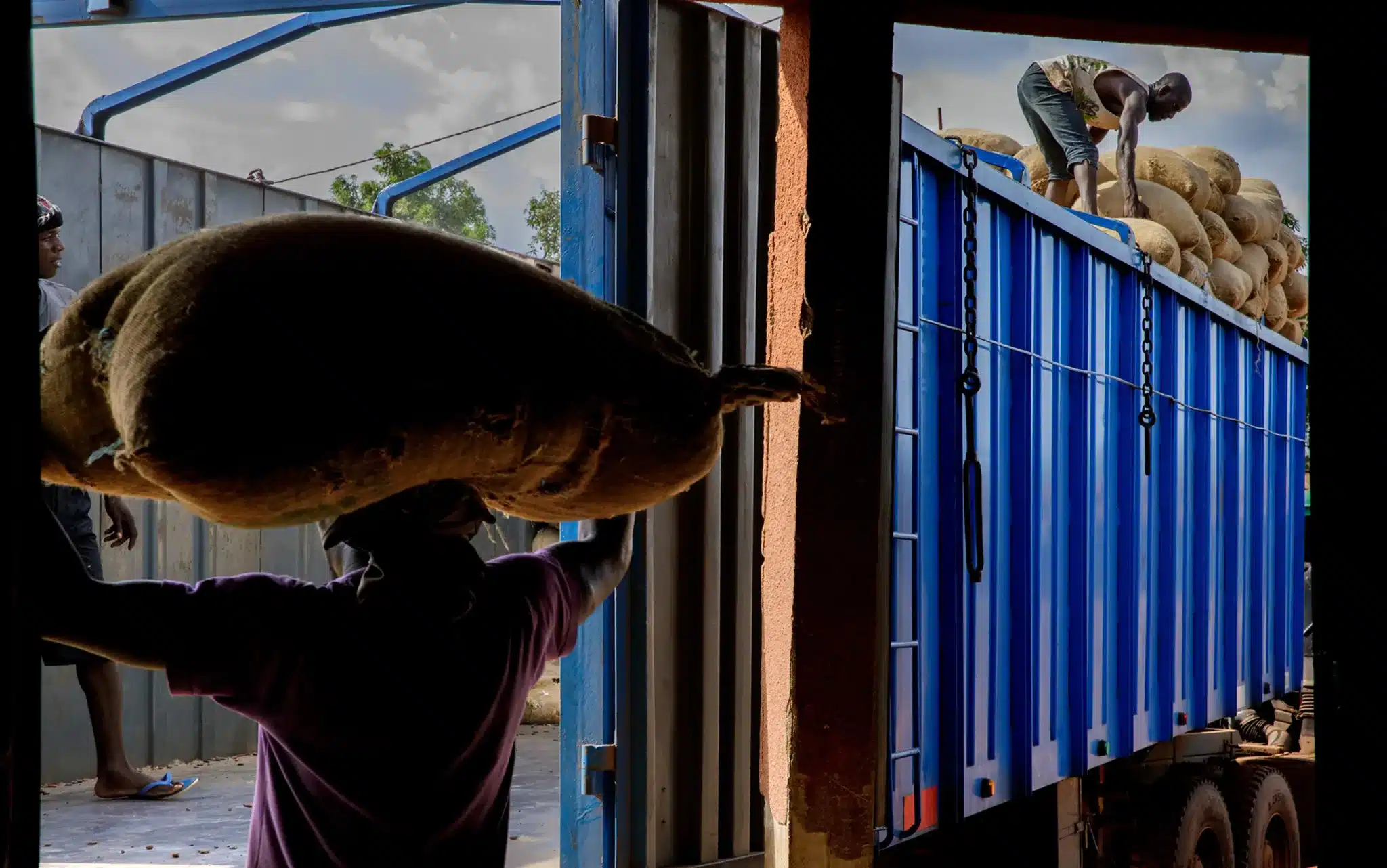 Loading up sacks of cocoa for export from San-Pédro, Ivory Coast. Photo: Pascal Maitre/Panos.