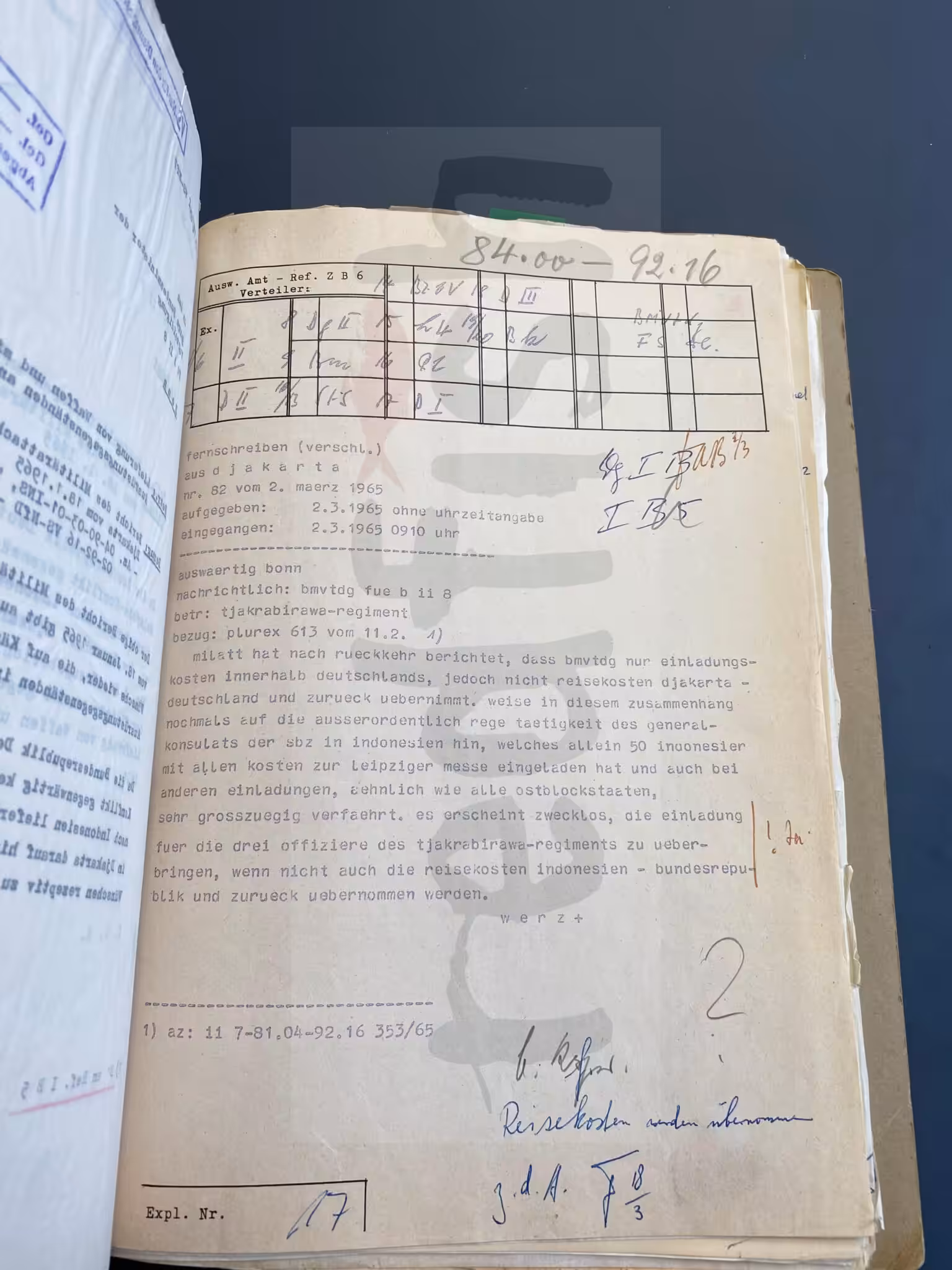 “re: Intelligence service’s cooperation with Indonesian military authorities By letter to BMVTG [Federal Defence Ministry]… military attaché approves training of Indonesian secret service officers by the BNB [Federal Intelligence Service] and cooperation, as well as exchanges of intelligence about Communism.[8]