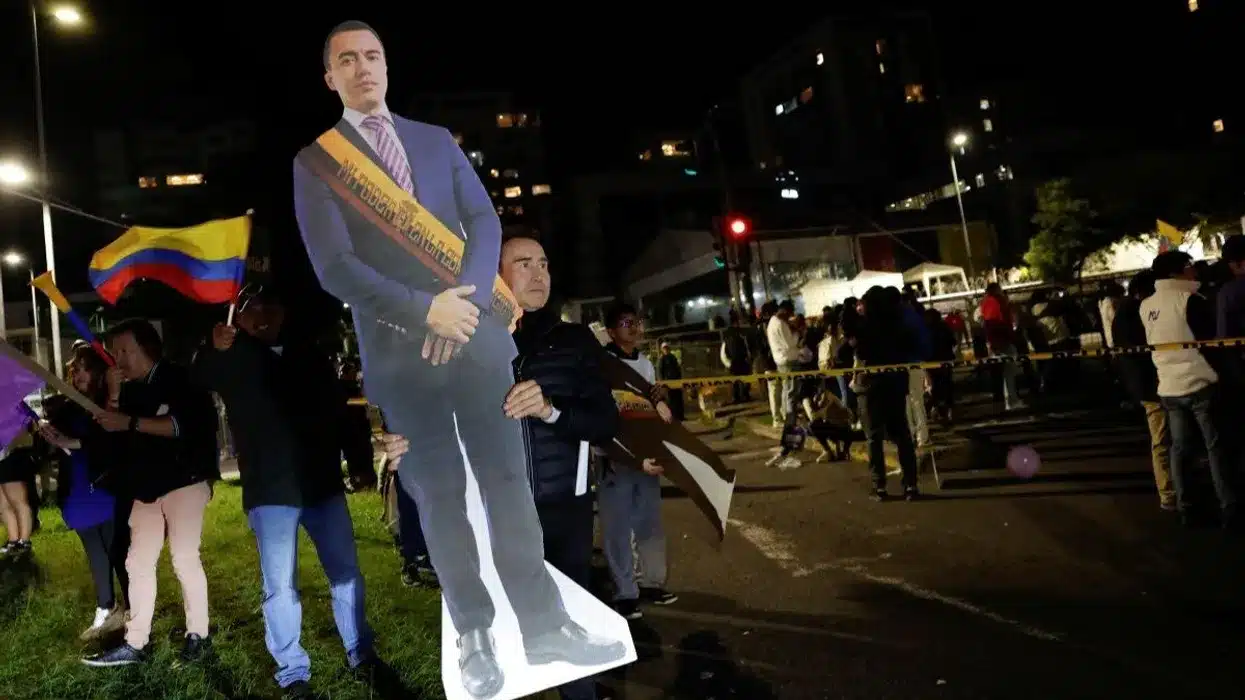 Supporters of Ecuador's President Daniel Noboa gather outside National Electoral Council (CNE) building, in Quito, Ecuador, on April 13, 2025. Photo: Daniel Becerril/Reuters.