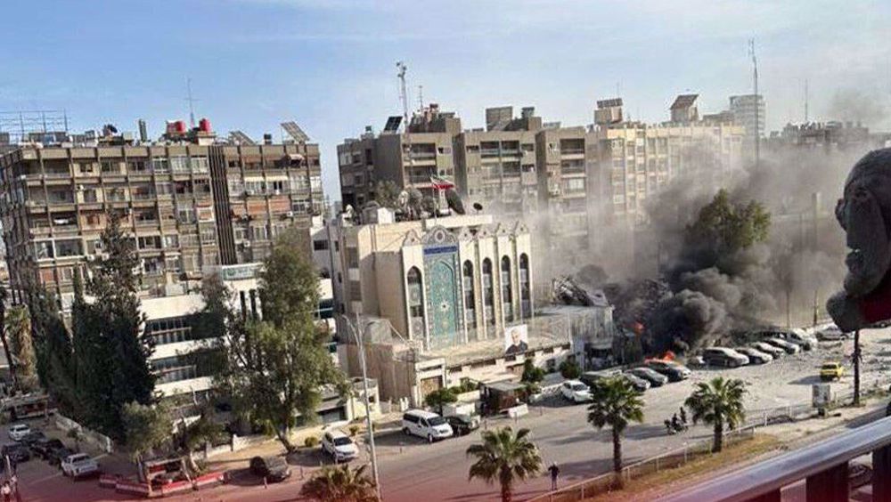 A building next to the Iranian Embassy in the Syrian capital of Damascus comes under a missile attack on April 1, 2024. Photo: PressTV/File photo.