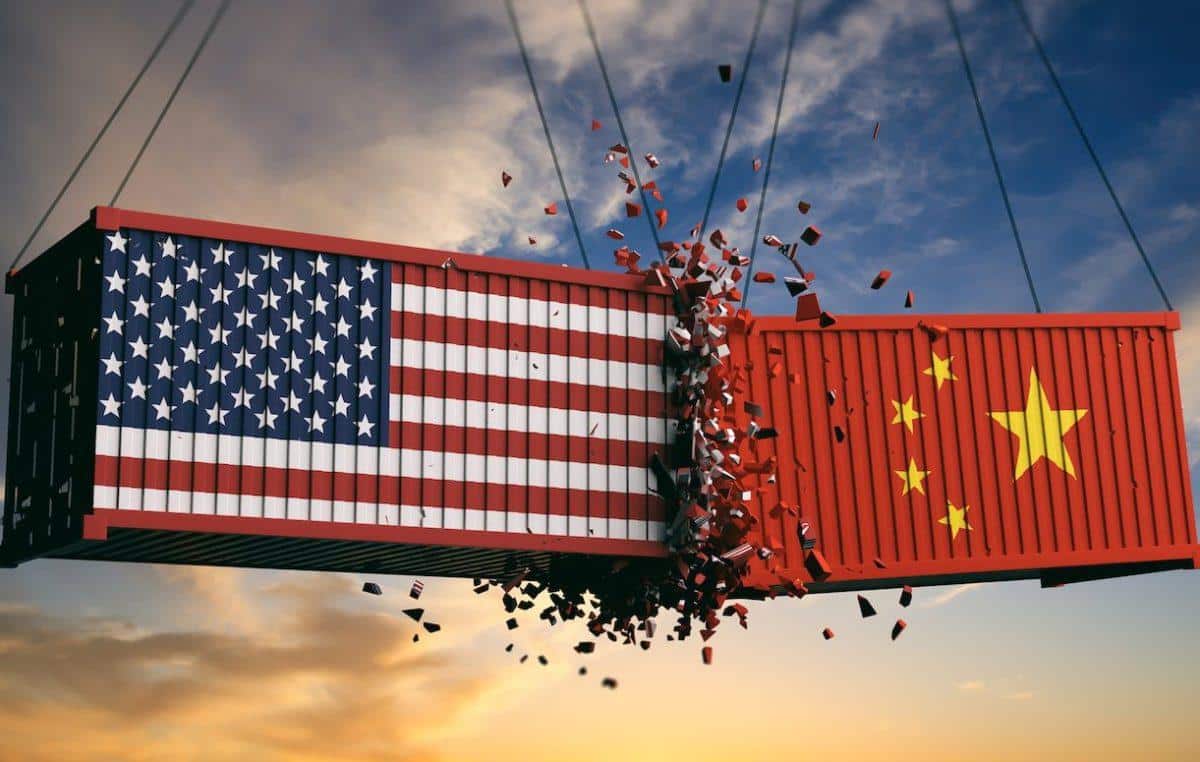 Graphic depicting the collision of China and US transport crates. Photo: Adobe Stock.