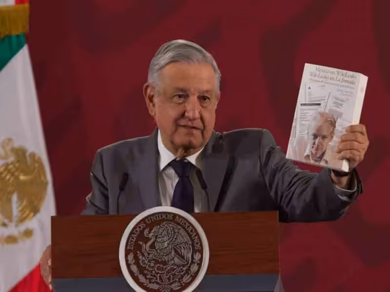AMLO offering political asylum to Julian Assange during his Matutina press conference. Photo: Cuartoscuro.