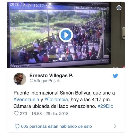 He highlighted a video presented by Venezuelan Minister of Culture, Ernesto Villegas, on December 29 on his Twitter account, showing a large number of people moving from Cúcuta to San Antonio del Táchira on the afternoon of that day, explaining that Many of them came to spend their vacations in Venezuela or to settle permanently in the country.