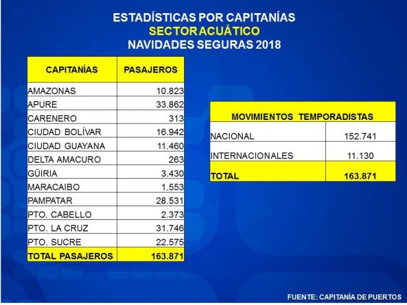 152,741 people traveled by water to domestic destinations such as the cays of Morrocoy, Nueva Esparta, Los Roques or Mochima, while 11,130 people traveled by water abroad.