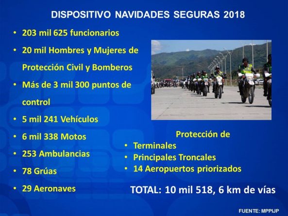 This was due – Rodriguez explained – an operation was carried out with 203,625 officers, 20,000 men and women of Civil Protection and Fire, 3,300 control points, 5,241 patrol vehicles, 6,328 motorcycles, 235 ambulances , 78 cranes, 29 aircraft and 10 thousand 528 kilometers of roads covered throughout the national territory.
