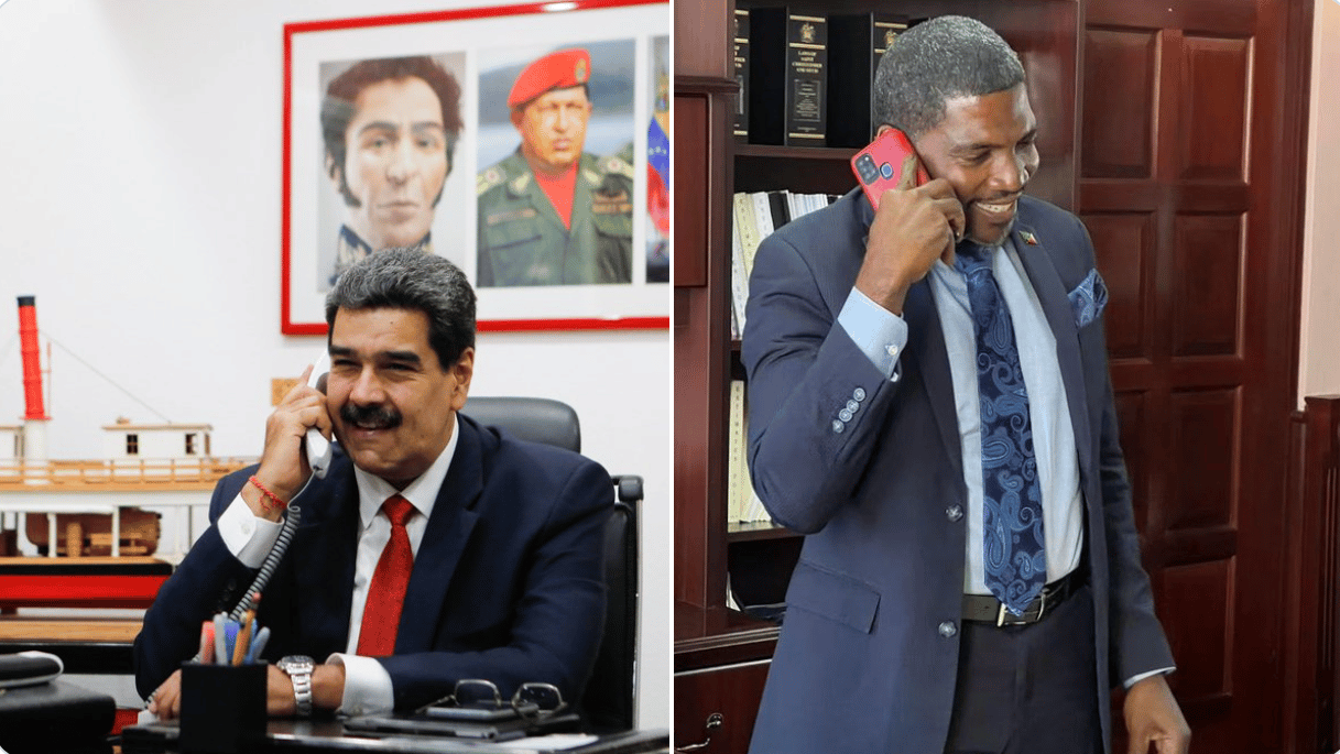 Venezuelan President Nicolás Maduro (left) and prime minister of Saint Kitts and Nevis, Terrance Drew (right) speaking on the phone. Photo: Twitter/@NicolasMaduro.