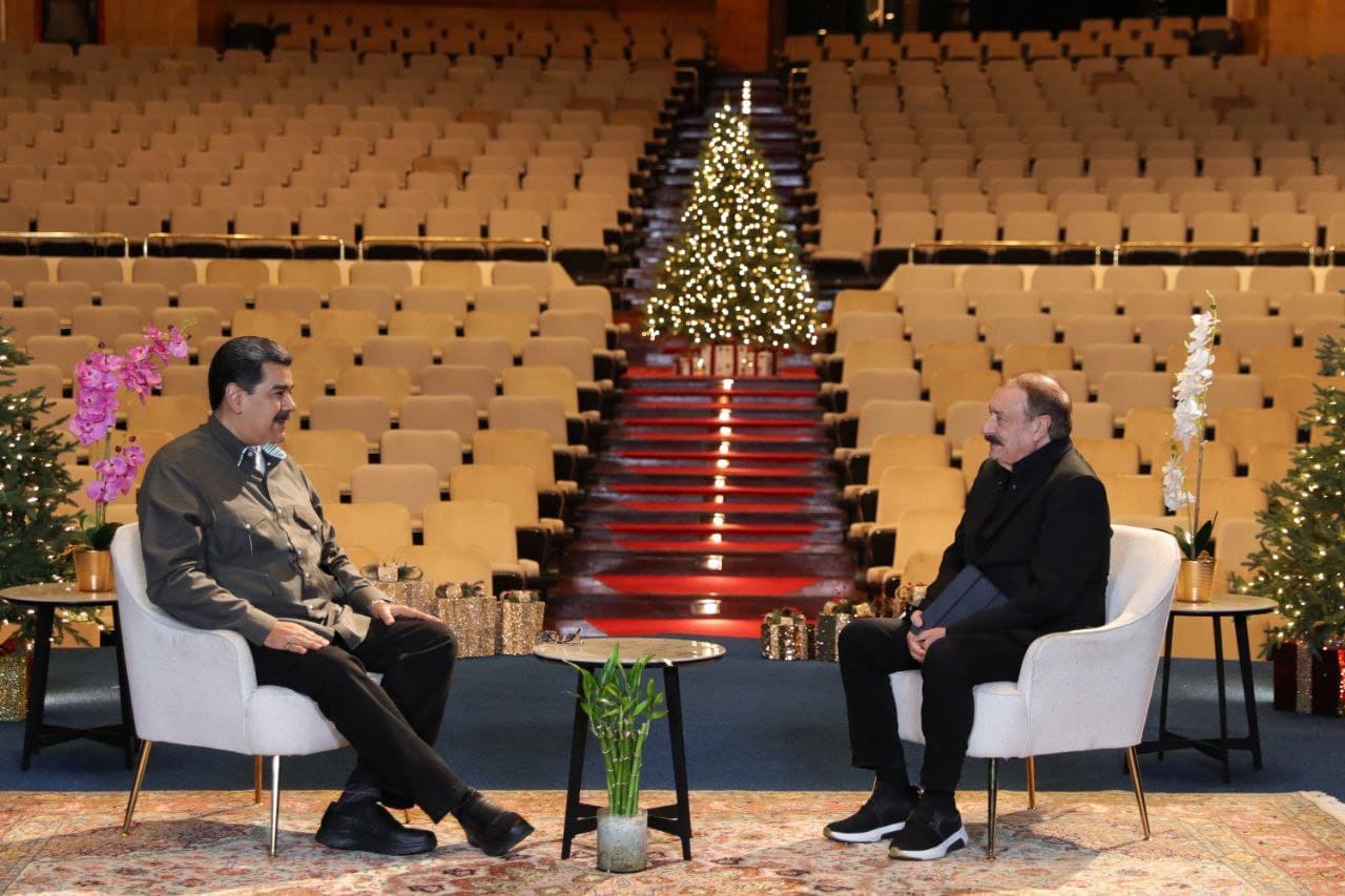 Venezuelan President Nicolás Maduro being interviewed by journalist Ignacio Ramonet. Photo: Telesur.