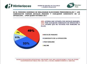 The most recent survey of June 2022 carried out by Hinterlaces showed that if Venezuela’s presidential elections were next Sunday, 49% of those interviewed would vote for the current president, Nicolás Maduro.