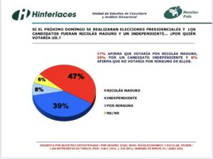 As explained by Hinterlaces, the study included 1,200 interviews nationwide, and the participants were selected from a random sample stratified by gender, age, education, socioeconomic level, and region.