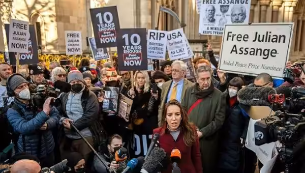Stella Morris (C) at a rally demanding the release of Julian Assange, 2022. Photo: Twitter/@B2O6N4.